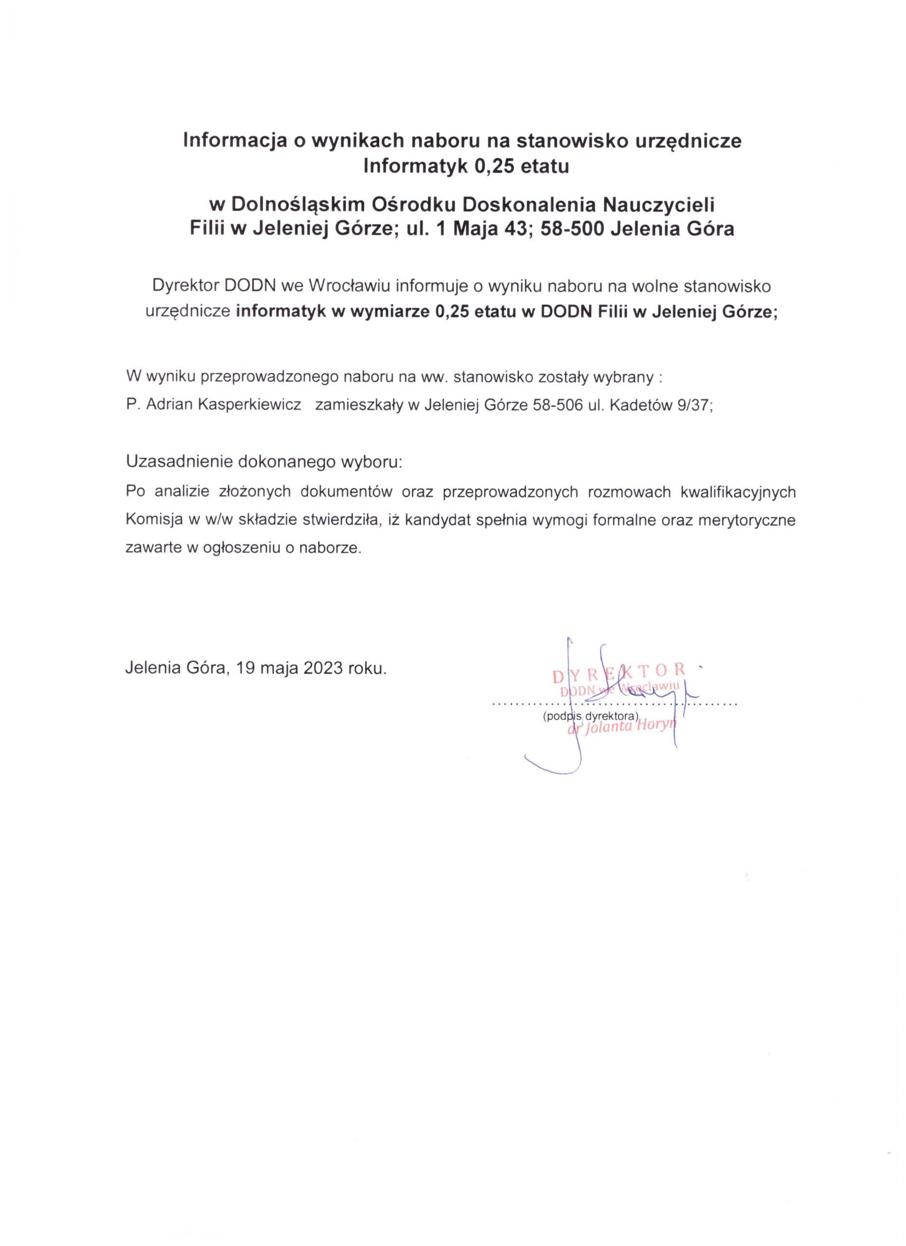 Dyrektor Dolnośląskiego Ośrodka Doskonalenia Nauczycieli we Wrocławiu