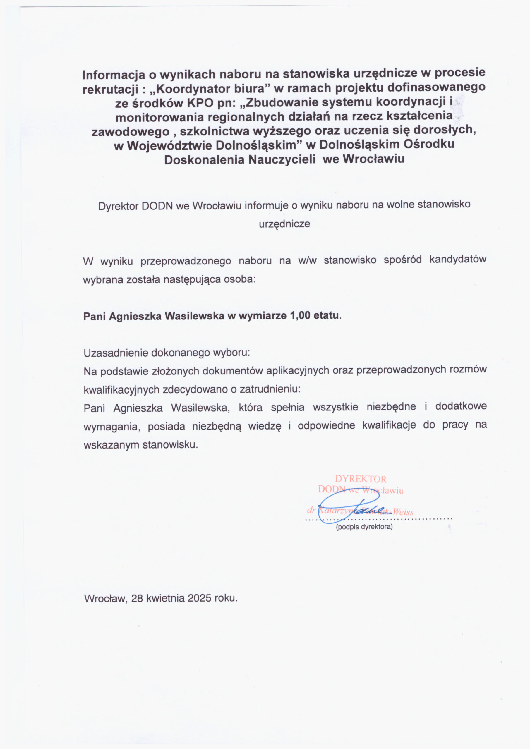 Dyrektor Dolnośląskiego Ośrodka Doskonalenia Nauczycieli