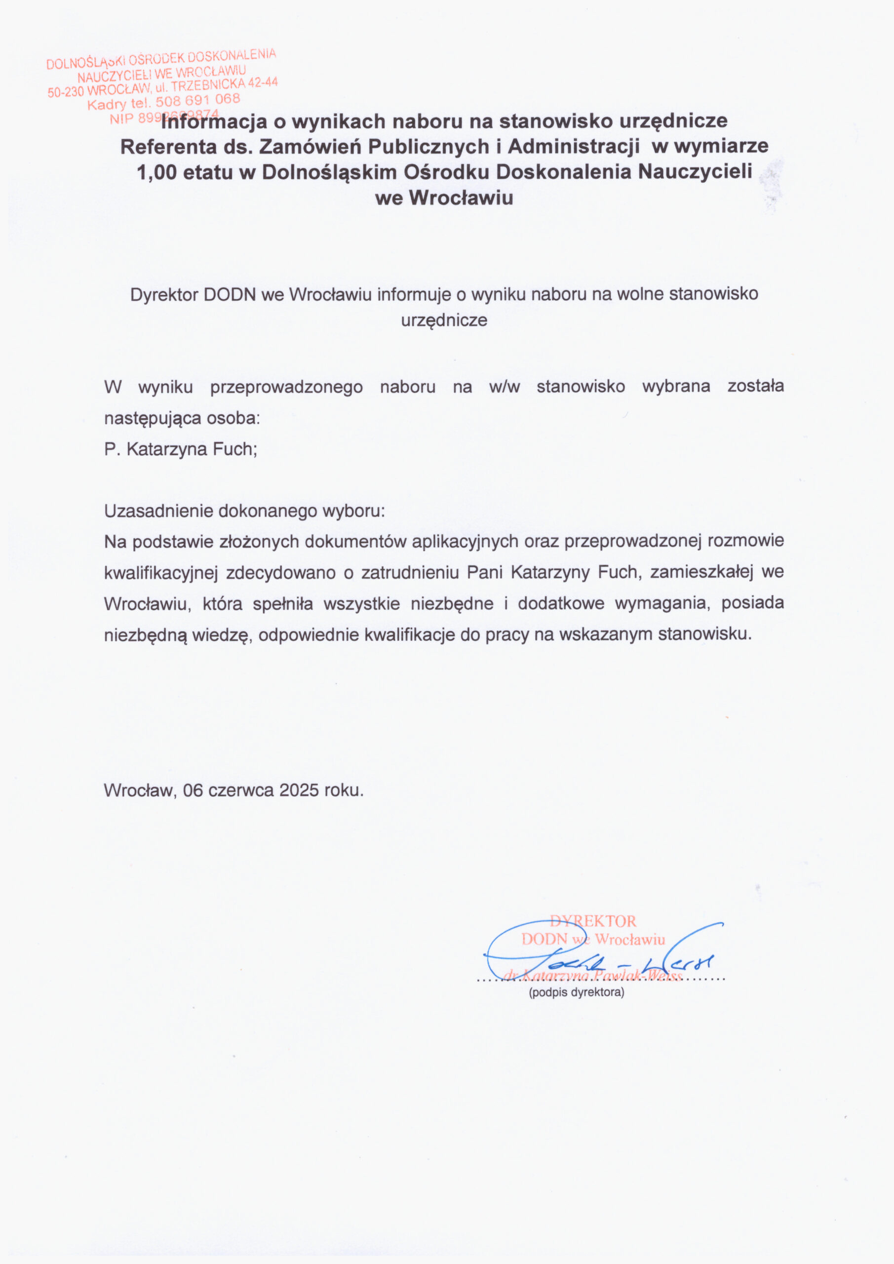 Dyrektor Dolnośląskiego Ośrodka Doskonalenia Nauczycieli