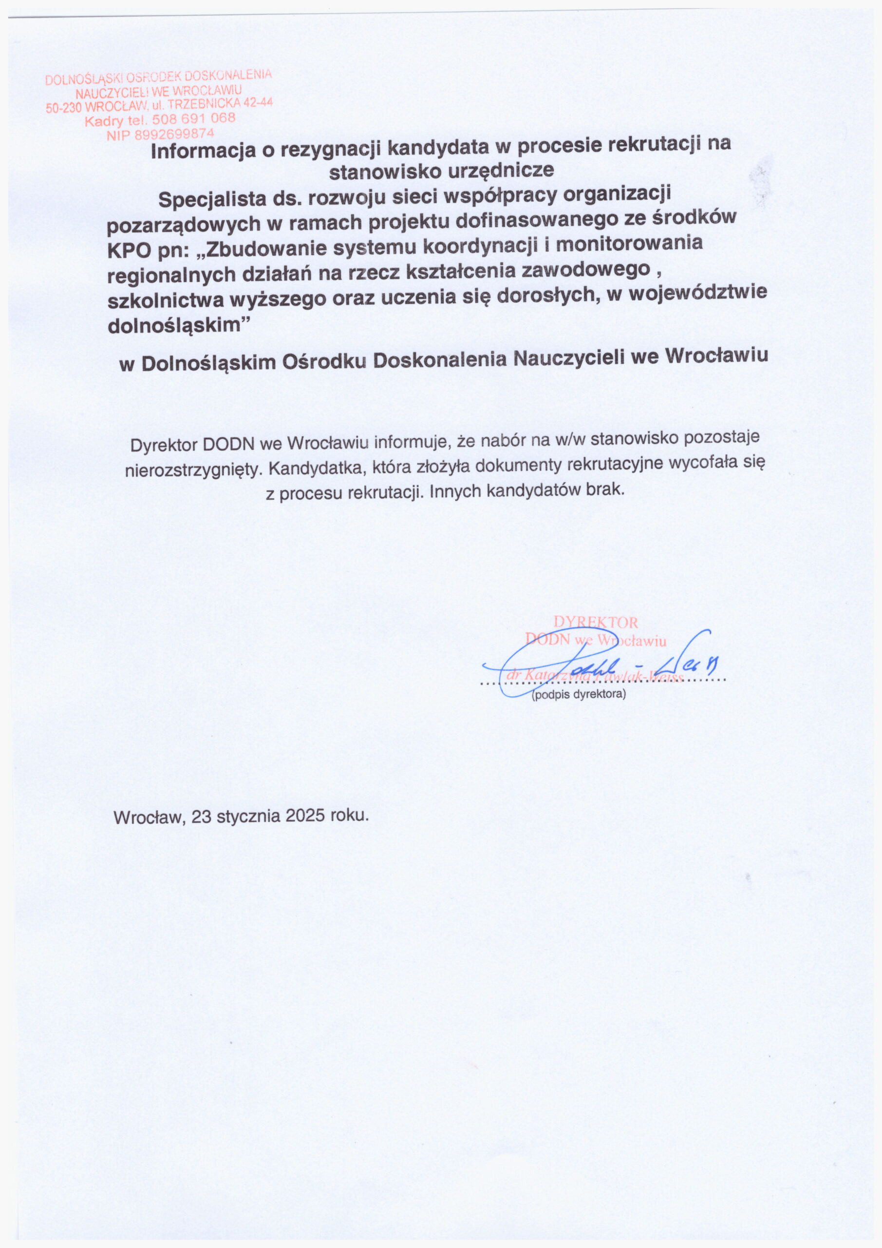 Dyrektor Dolnośląskiego Ośrodka Doskonalenia Nauczycieli